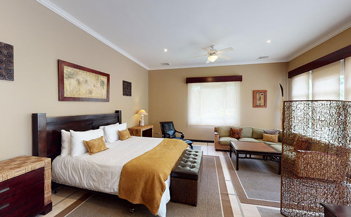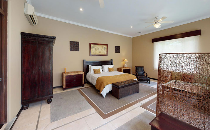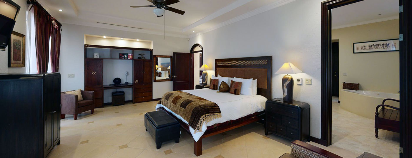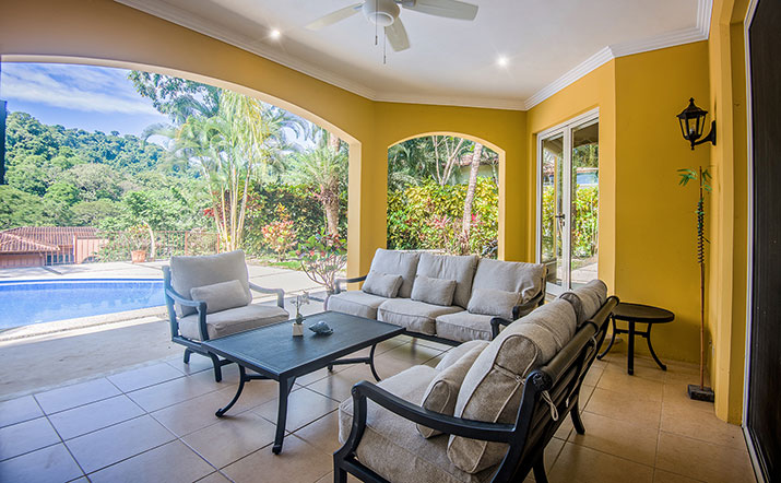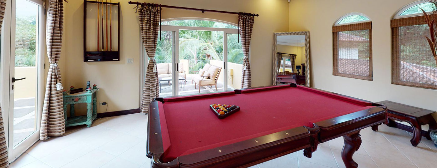 Casa Africana offers 5,900 square feet of interior living space and large covered terraces with views of the fairway and Herradura Bay. Amenities include a free-form swimming pools, a large game room with championship pool-table, barbecue area and lush landscaping.