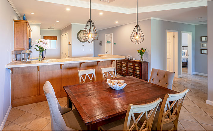 The Del Mar Condominiums feature a striking contrast between Mediterranean architectural design and the delicate landscape that characterizes this community. Del Mar is a haven for recreation and active living within Los Suenos.