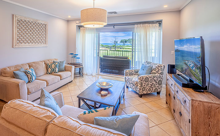 Covered terraces and balconies offer comfortable vantage points from which to take in the panoramic views of the fairway, marina and the ocean views of Herradura Bay.