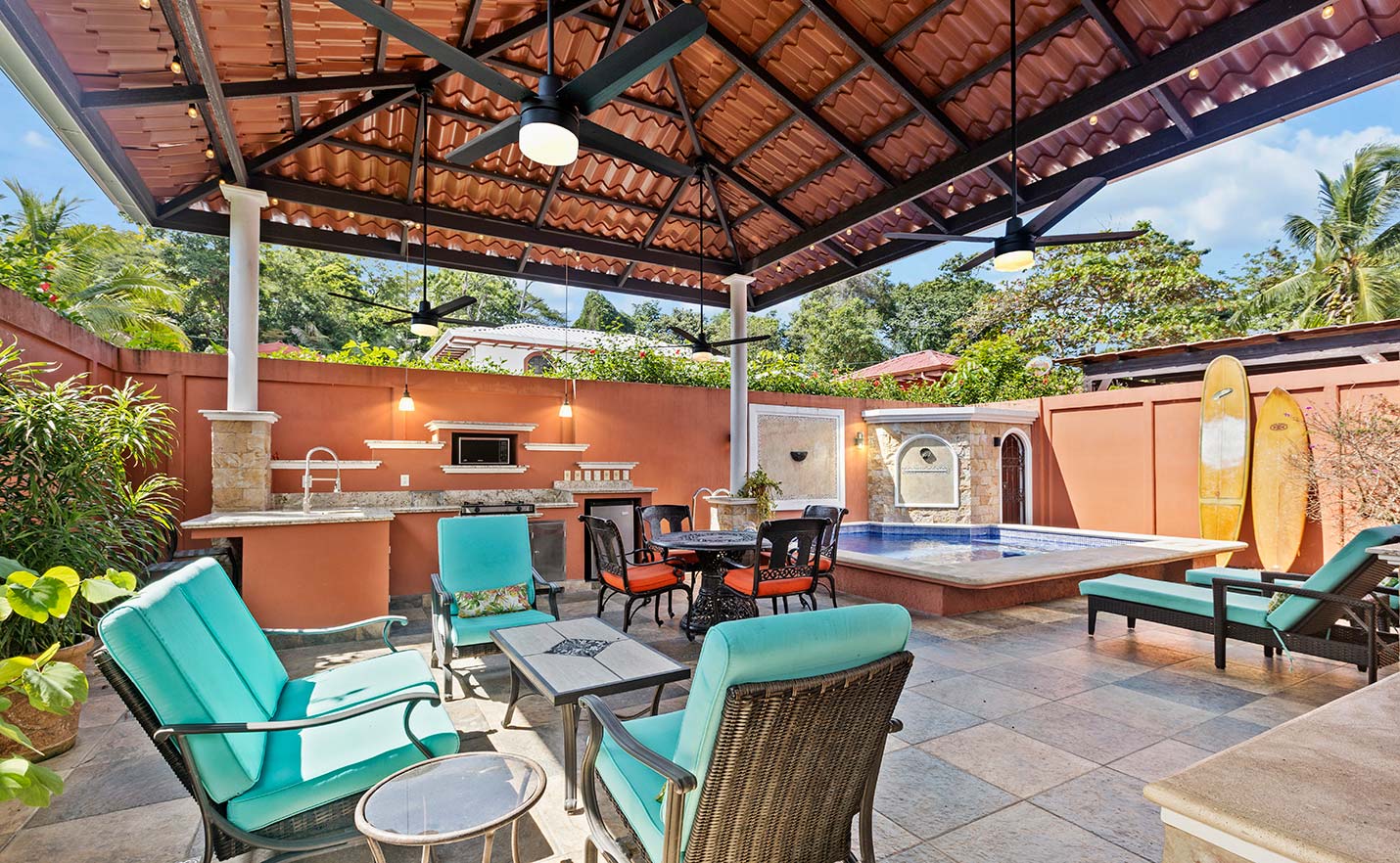 area with a swimming pool, covered rancho picnic area, and septic treatment plant. In addition Esterillos Town Center is only a five minute drive and offers locals many great restaurants,
