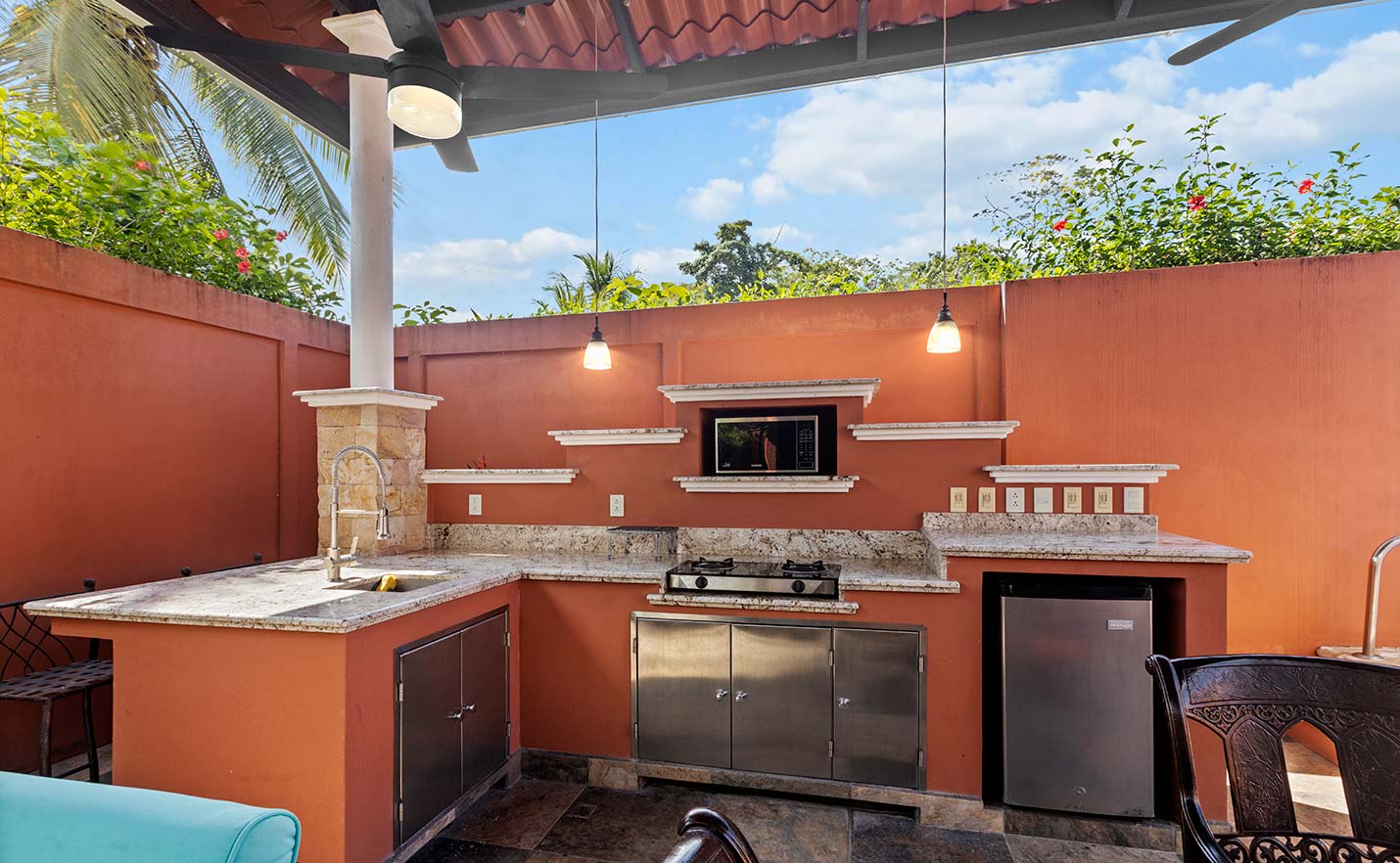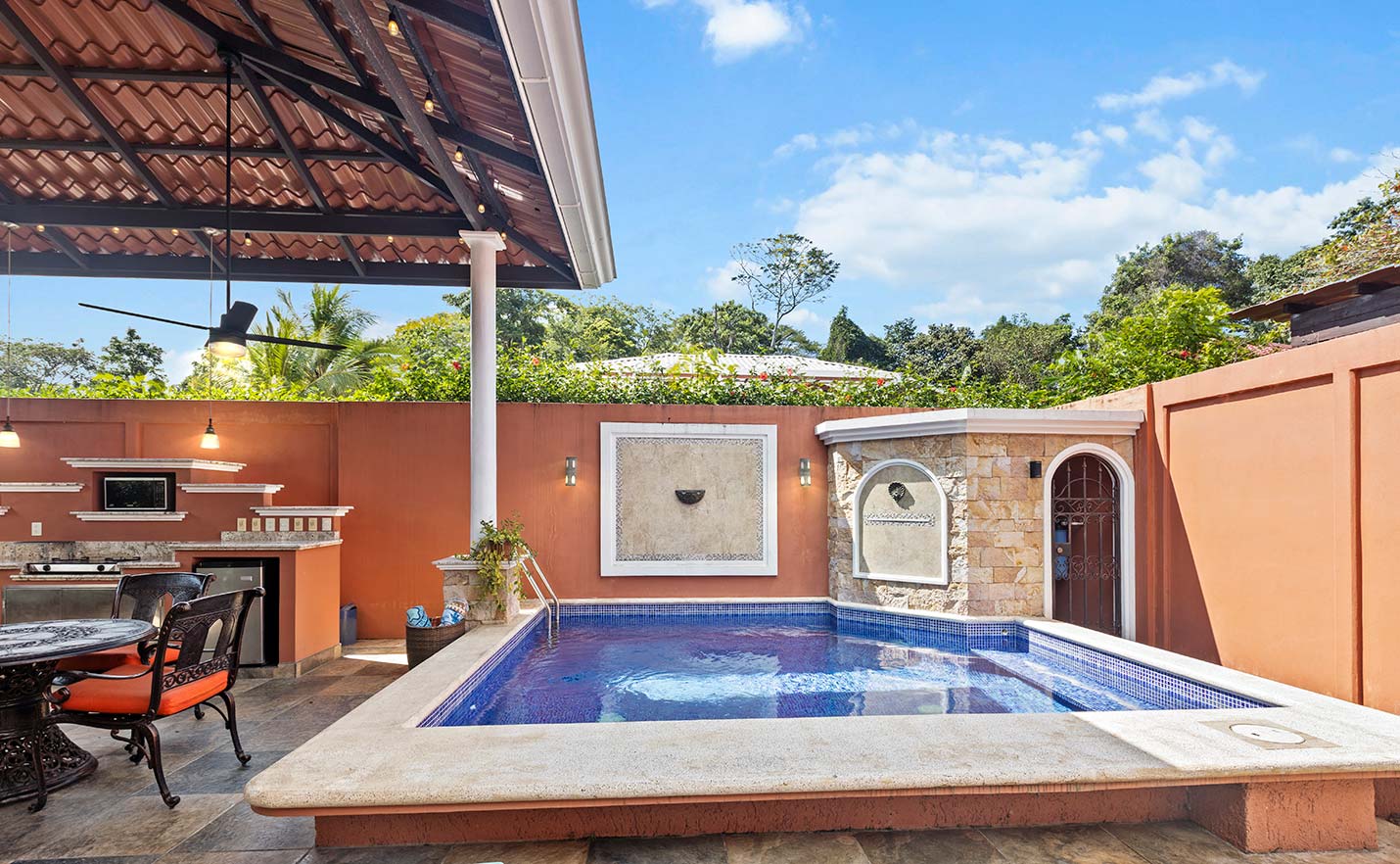 a private pool and outdoor kitchen which make this a true oasis in