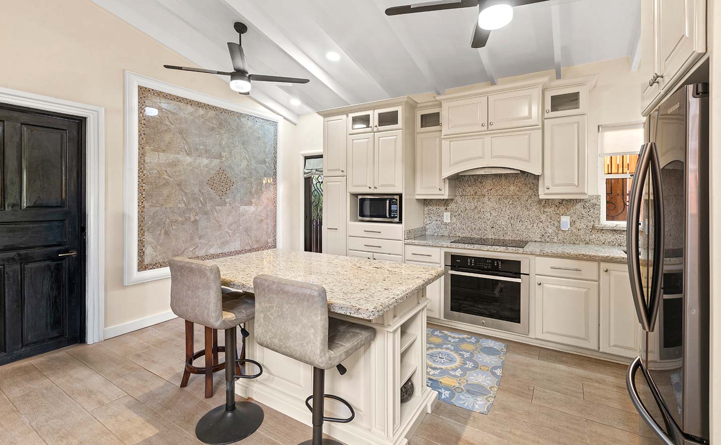 - Custom kitchen with granite countertops and stainless steal appliances