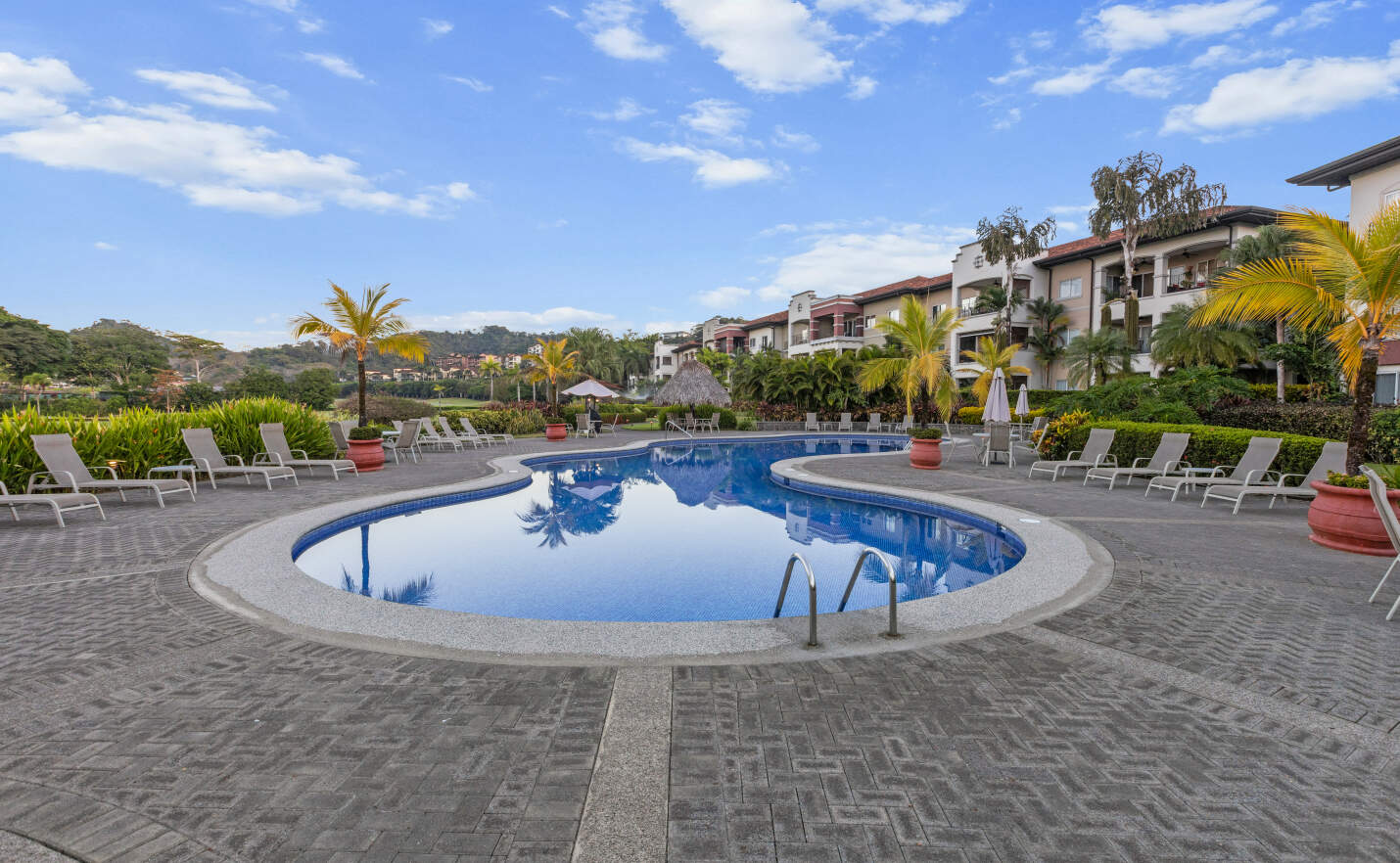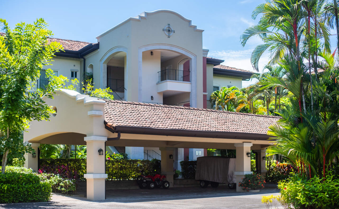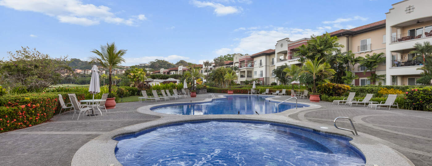 The Del Mar Condominiums feature a striking contrast between Mediterranean architectural design and the delicate landscape that characterizes this community. Del Mar is a haven for recreation and active living within Los Suenos.